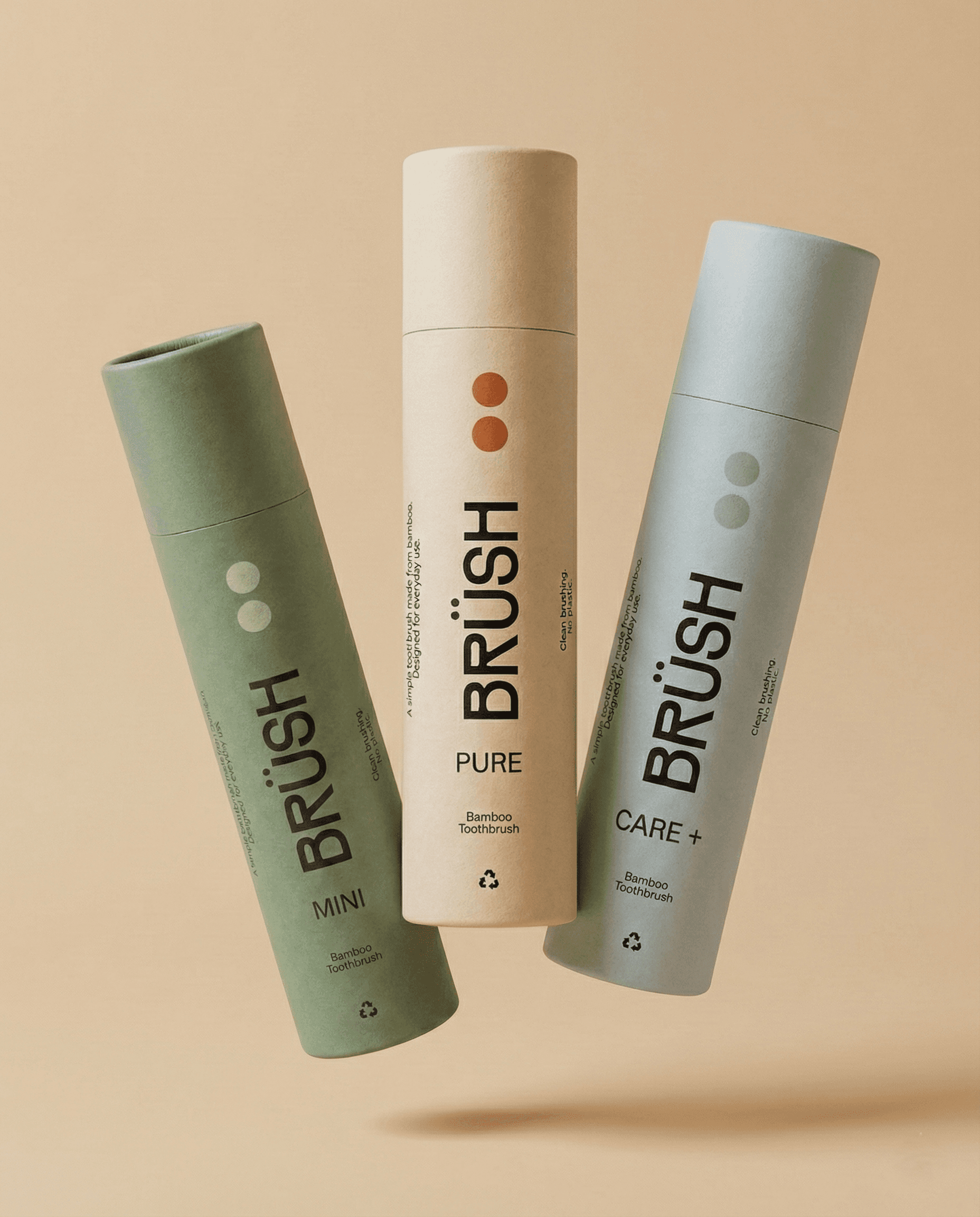BRÜSH is a branding and packaging project for a bamboo toothbrush brand, focused on clean design, minimal systems, and reusable packaging. The project explores restraint, hierarchy, and consistency across product variants.